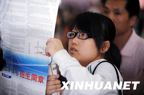资料图片:6月11日,一位学生在沈阳高招咨询大会现场浏览招生简章。