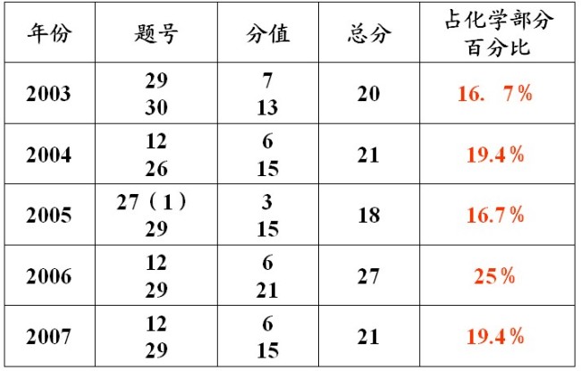 近五年全国理综有机化学赋分、题型、考点统计一览表